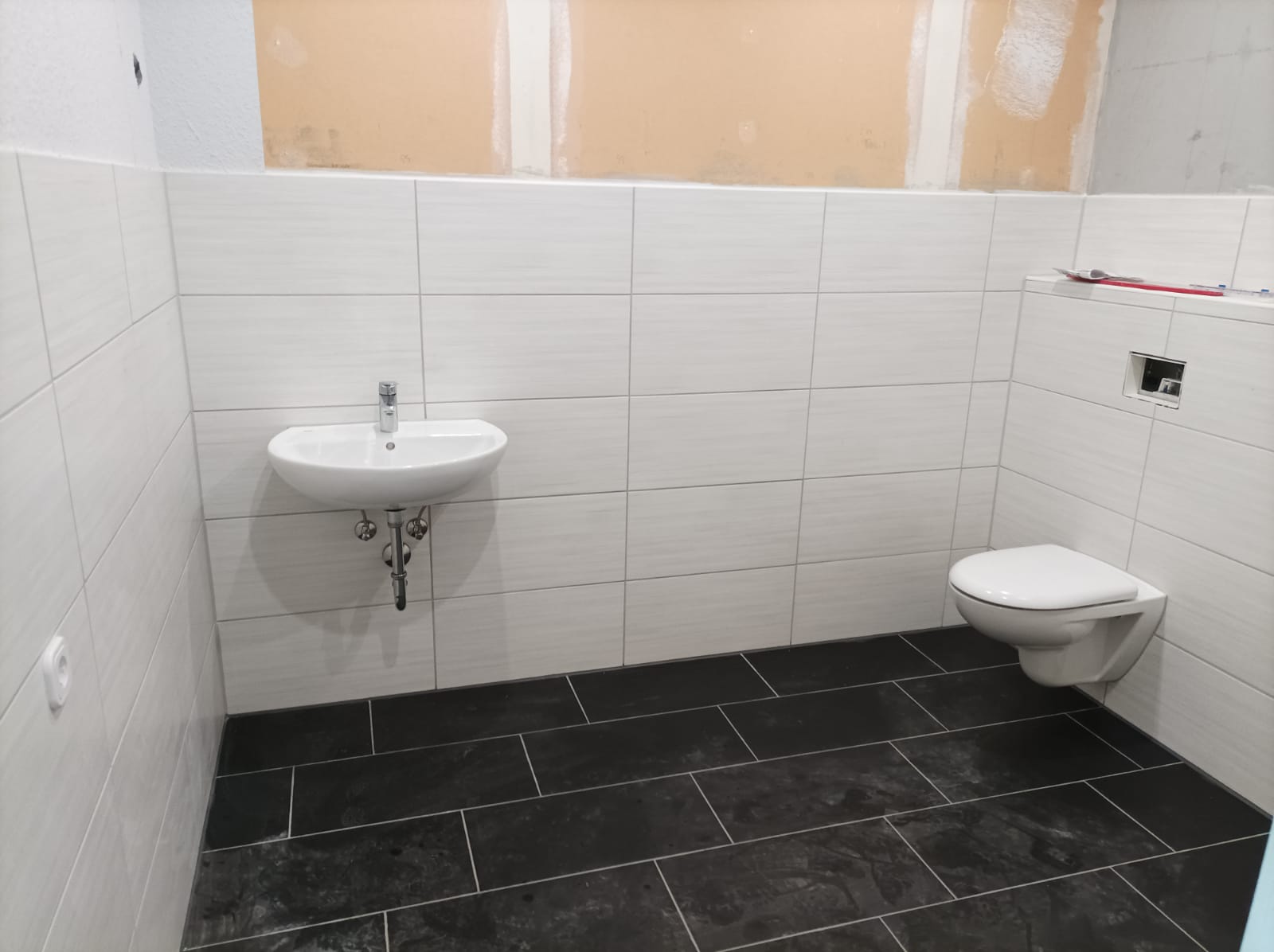 Und die Arbeiten gehen im Dojo Neumark weiter. Im Eingangsbereich wurde fleißig gestrichen, Licht in der Umkleide gelegt und hauptsächlich im Sanitärbereich weiter gearbeitet, sodass Küche, WC und Dusche, als die letzten großen Arbeiten, auch vorangetrieben werden.