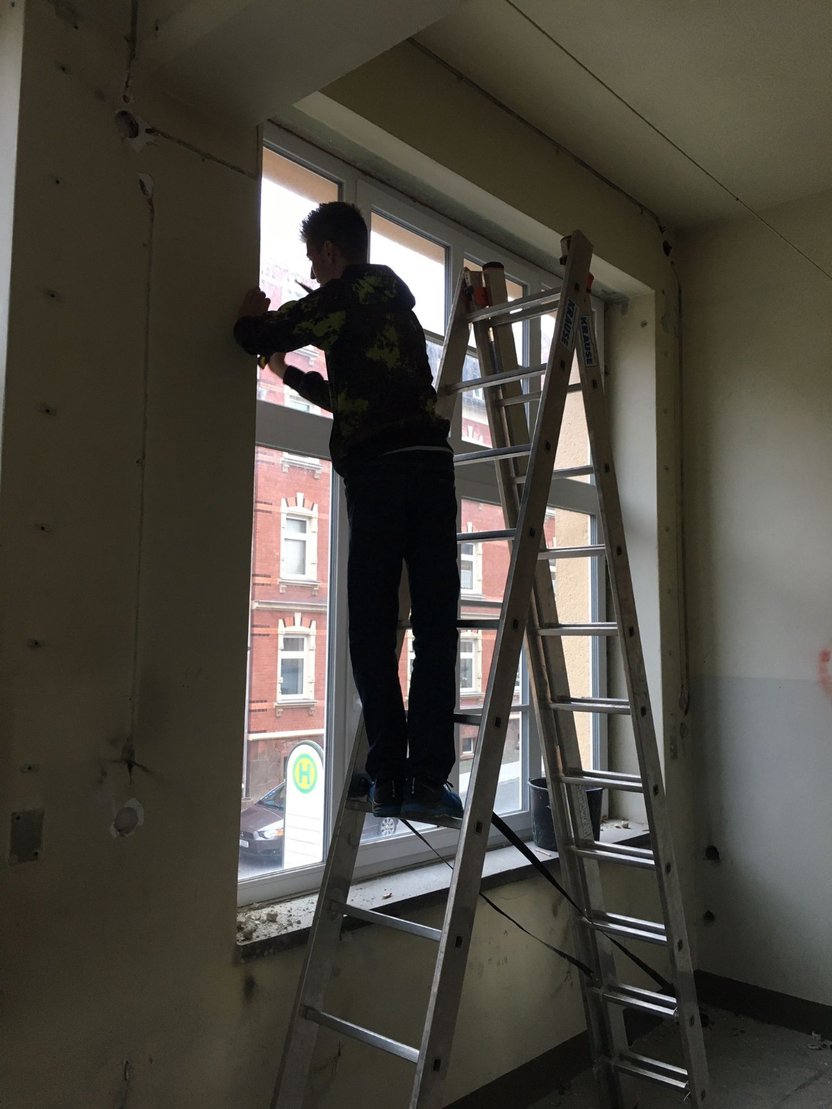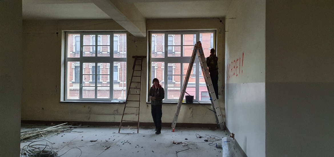Jetzt liegt jedoch eine Menge Arbeit vor uns. Die Räume im alte Industriegebäude sind nicht renoviert bzw. saniert und wir haben uns bereit erklärt, dies in Eigenleistung zu tun. Herr Oertel unterstützt uns hier großzügig und übernimmt sämtliche Materialkosten.
